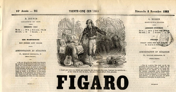 Cet article a été transcrit par nous à partir de notre exemplaire du Figaro du 8 novembre 1863. Sauf correction d’erreurs évidentes on a respecté l’orthographe de l’original.